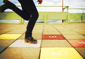 Na dětském hřišti jsou návody na "chodníkové hry"